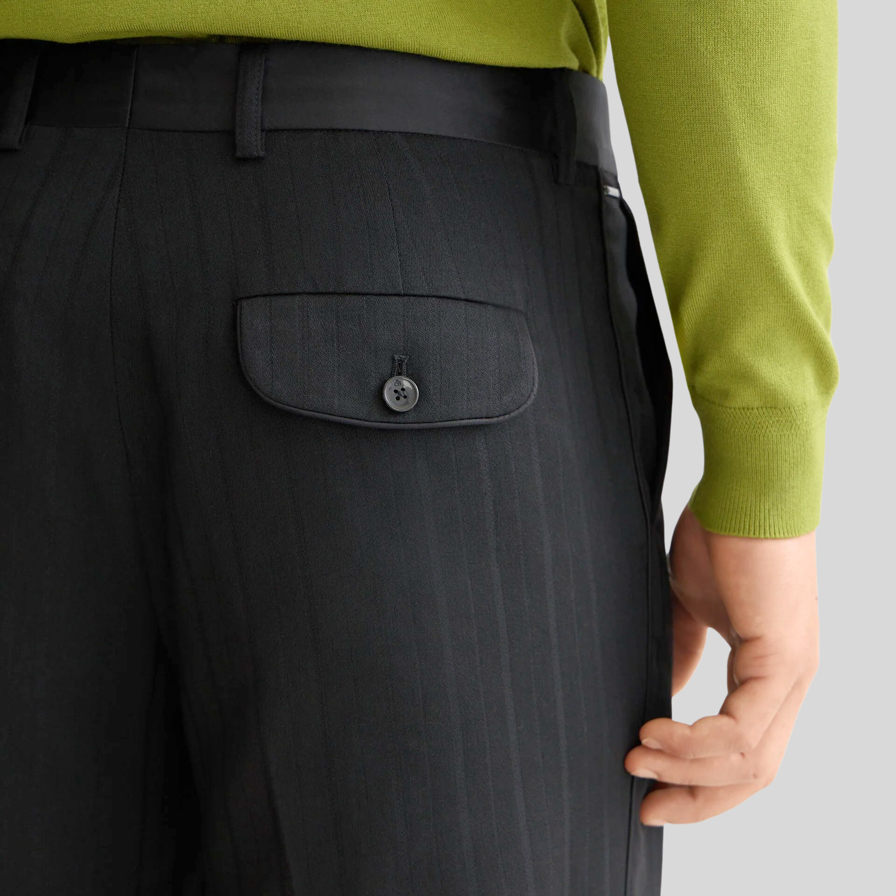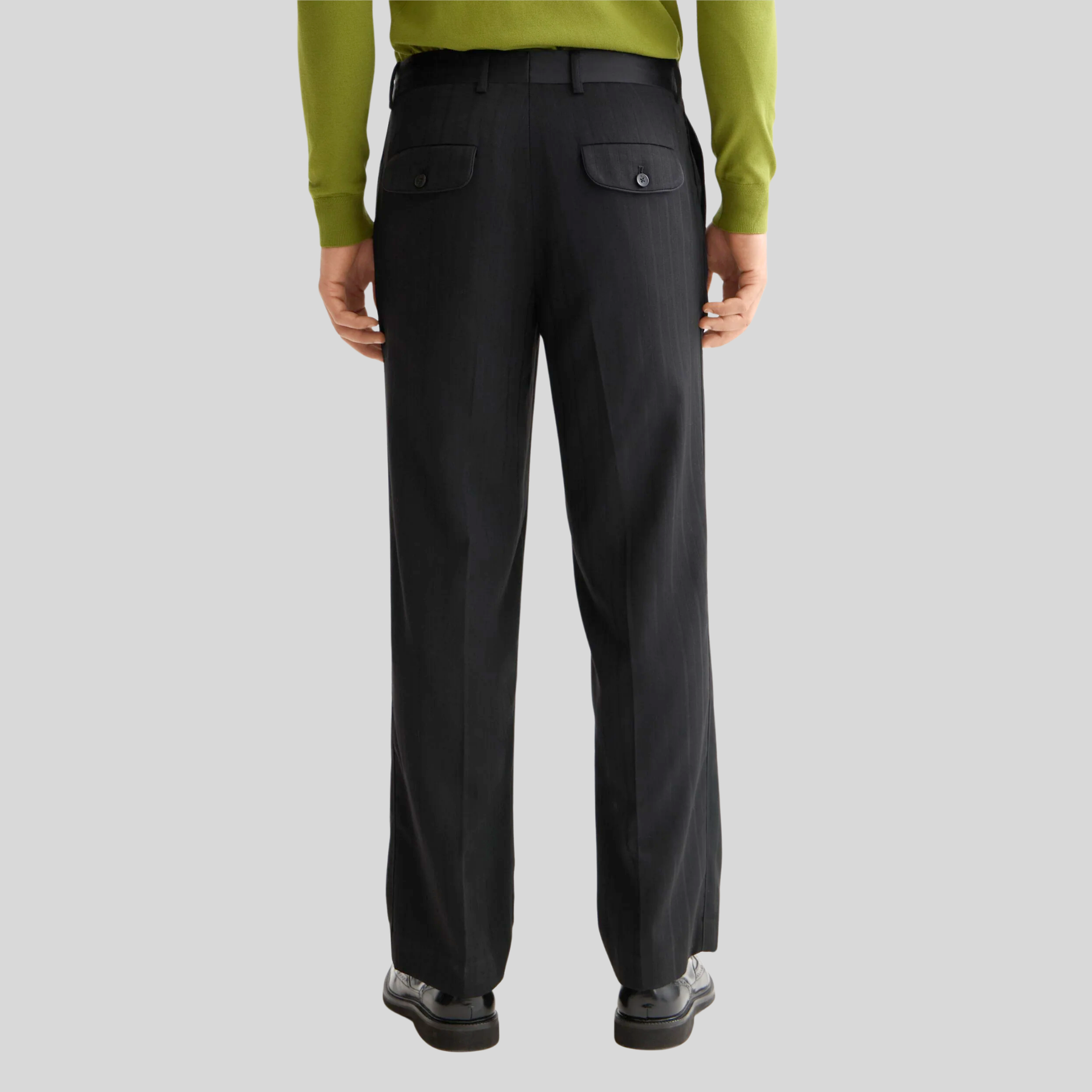 These relaxed-fit chinos balance comfort with refined tailoring. The structured stripe pattern adds visual interest while maintaining a professional aesthetic, and the straight-leg silhouette works seamlessly into any wardrobe rotation. A subtle sateen trim elevates the finish, delivering understated sophistication. Ideal for elevated casual wear or business-casual settings where ease meets polish.