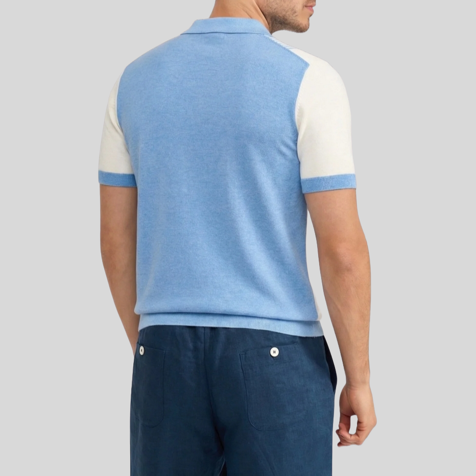 Gotstyle Fashion Blue Industry Colour Block Zip Knit Polo - Blue