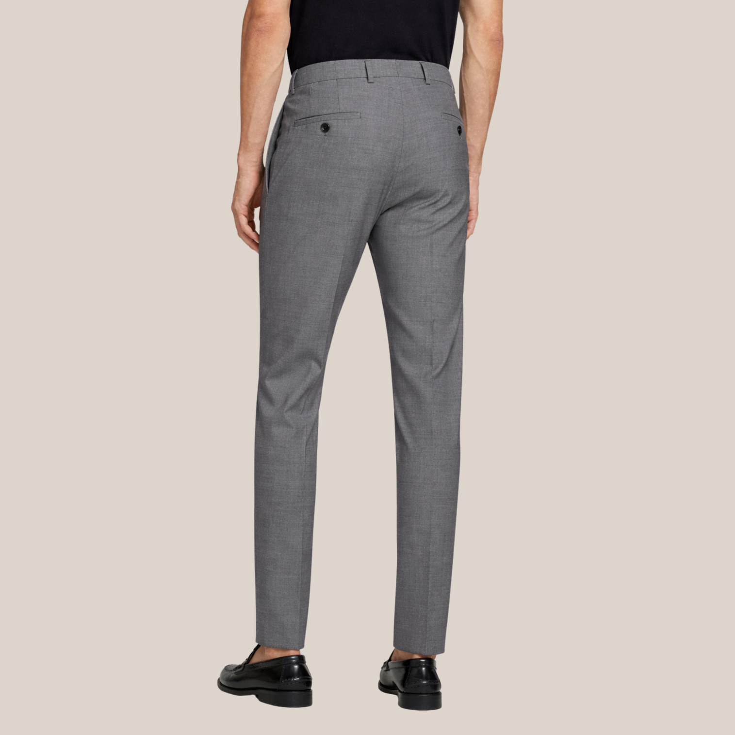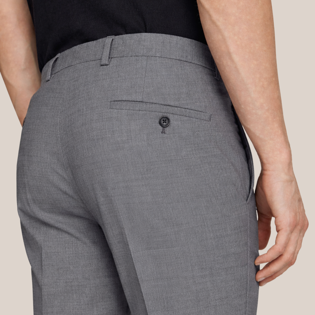 Tailored slim fit trousers crafted for a refined silhouette. Sharp creases maintain their shape throughout the day, while side pockets and rear welt pockets offer practical storage. Secured with a hook tab closure for a polished finish. Perfect for building a versatile suiting wardrobe.